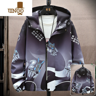 YANXU男士外套潮牌百搭秋装上衣服秋季新款连帽冲锋衣休闲防风夹克