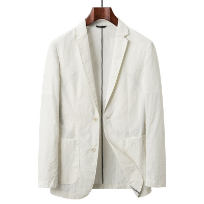锦纶棉透气西装春夏薄款男式外套微皱质感单层防晒西装休闲西装男