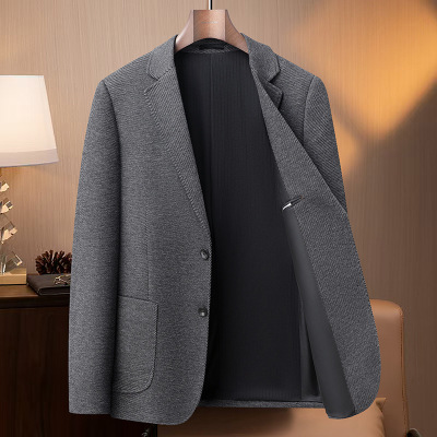 秋冬双层含棉厚款商务休闲西装男士修身弹力免烫西服可机洗单西装