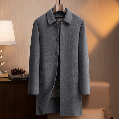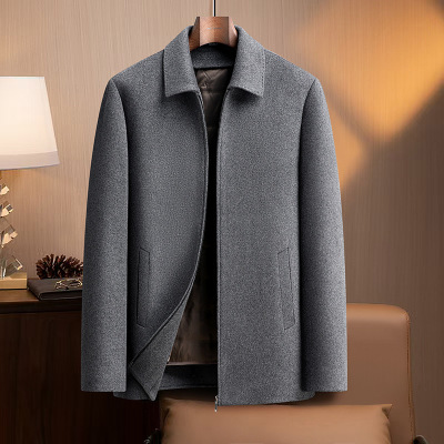 中老年商务脱卸鹅绒内胆双面呢短款大衣男士秋冬羊毛大衣休闲外套