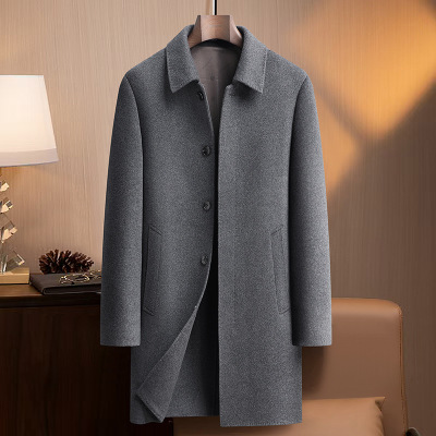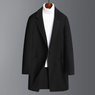 暗扣襟羊毛双面呢大衣风衣男士秋冬中长羊毛大衣商务休闲外套男
