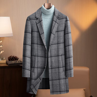 秋冬新款双面毛呢羊毛大衣男修身中长款羊绒格子大衣风衣男装外套