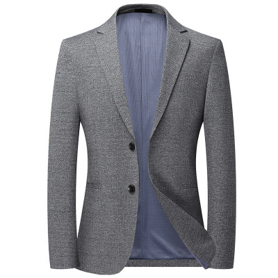 春季薄款男式西服免烫修身中青年灰格小西装休闲单西