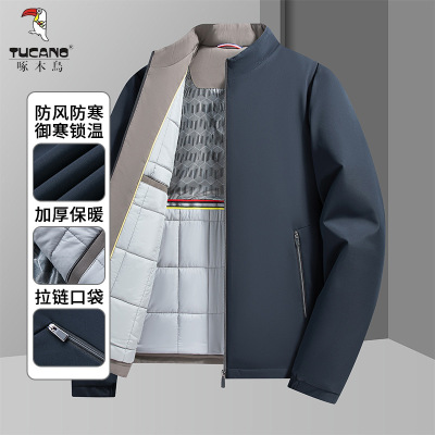 啄木鸟2025冬季新款行政夹克休闲连帽保暖轻商务纯色男款棉服外套