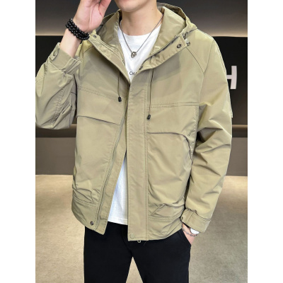 秋款男士工装风连帽夹克冲锋衣时尚潮牌青年帅气宽松外套上衣