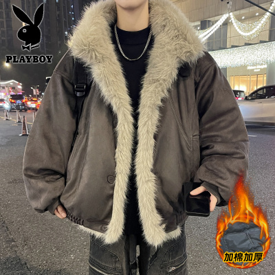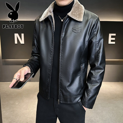花花公子新款高品质皮毛一体皮衣男加绒加厚PU皮夹克翻领青年冬季外套