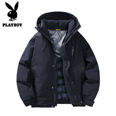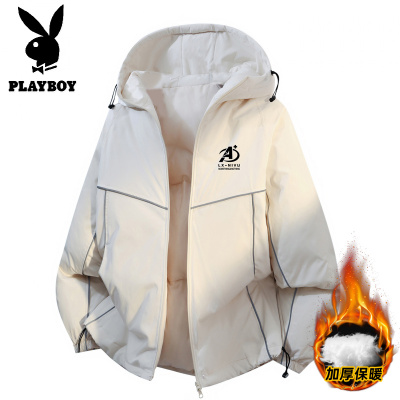 花花公子新款2025冬加厚保暖外套户外防风夹克连帽通勤棉衣