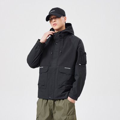 高品质户外连帽冲锋衣男士春秋季新款休闲工装男生夹克潮ins