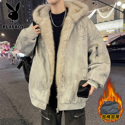 花花公子新款高品质秋冬季青少年加绒棉衣男潮流设计感棉服外套