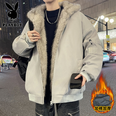 花花公子新款高品质秋冬季青少年加厚棉衣男潮流设计感毛领棉服