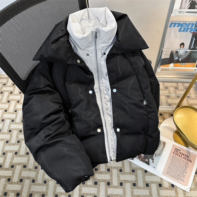 男装冬季新款假两件棉衣外套男保暖宽松韩版潮立领加厚面包服棉袄