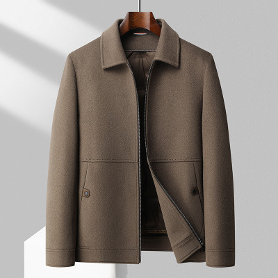 中老年商务鹅绒脱卸内胆双面呢羊毛茄克男秋冬新款简约双面呢外套