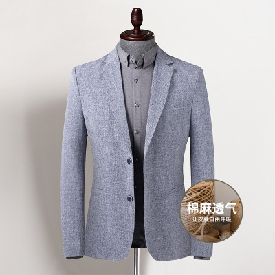 棉麻西装春夏薄款男士休闲西装修身开衩小西装亚麻外套男