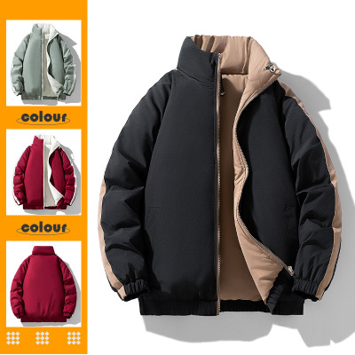秋冬新款棉衣双面穿夹克潮流情侣款休闲百搭立领面包服青少年外套