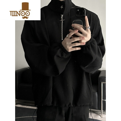 YANXU感半拉链卫衣男潮牌金属小众设计感宽松垫肩立领长袖套头上衣