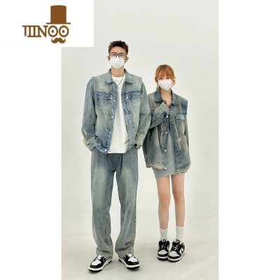 YANXU美式vibe复古做旧水洗牛仔夹克男潮牌小众垫肩设计感百搭情侣外套