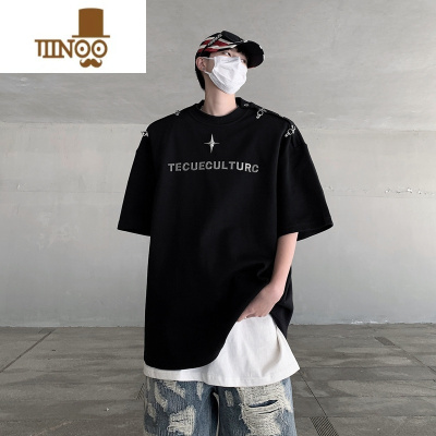YANXU夏季感短袖t恤男小众解构金属扣设计感韩版宽松垫肩潮牌高街