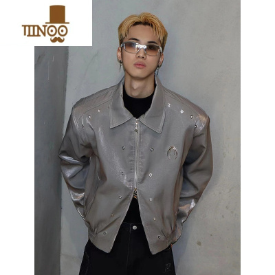 YANXU小众液态金属设计高街级感垫肩外套男女短款翻领痞帅宽松夹克潮牌