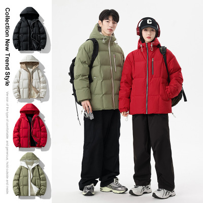 男装新款休闲情侣连帽棉衣秋冬季加绒棉服男女同款户外防水面包服