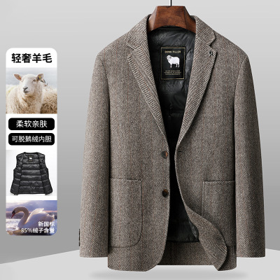 男装秋冬新款商务休闲鹅绒羽绒内胆双面呢羊毛西装男
