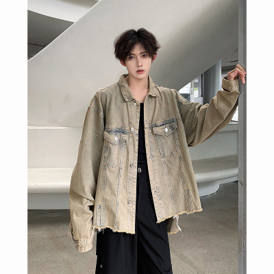 YANXU港风翻领牛仔夹克男士痞帅新款百搭男装休闲外套上衣服