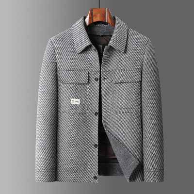 100羊毛夹克男士轻奢商务秋冬中年休闲翻领毛呢夹克 爸爸装男外套