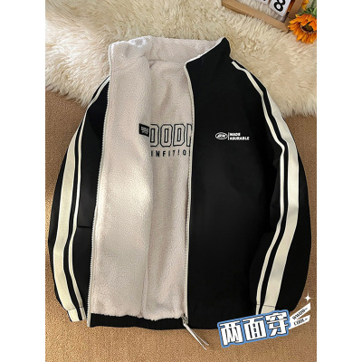 啄木鸟双面穿立领棉衣外套男士秋冬季潮牌高街户外加绒加厚保暖潮