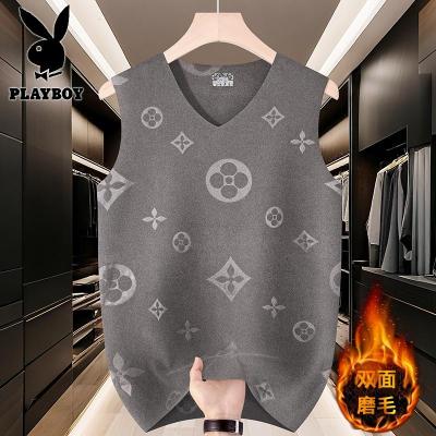 花花公子新款领德绒压花背心冬季保暖内衣男士磨毛弹力紧身打底上衣