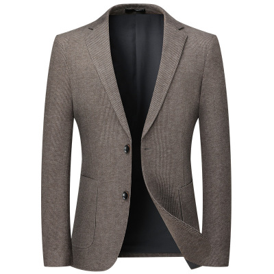 轻奢羊绒桑蚕丝西服男士秋冬新款羊毛呢格子单西装休闲男羊绒外套