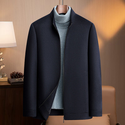潮流简约竖领双面呢羊毛茄克中青年男士秋冬新款双面呢羊毛厚外套