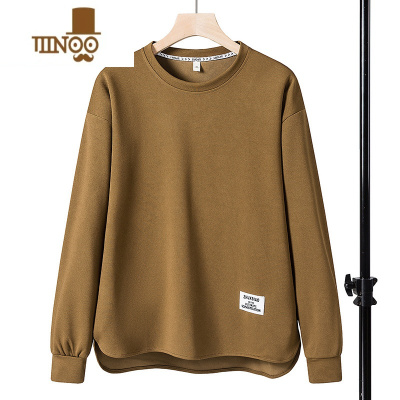 YANXU圆下摆长袖t恤男款宽松简约圆领体恤男薄款秋衣青少年打底衫