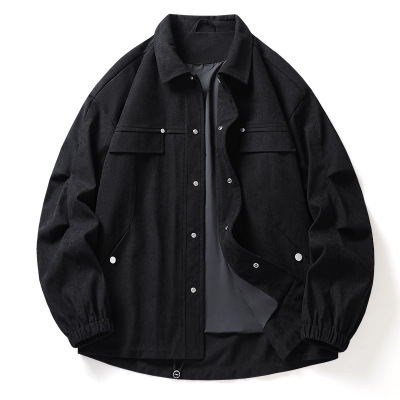 夹克男春秋季新款翻领纯色男装夹克翻领单排扣休闲百搭男士外套