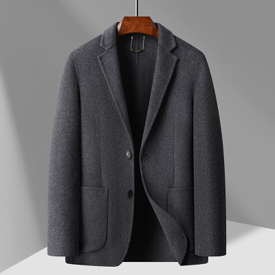 秋冬新款双面呢羊毛西服男士手工缝制休闲羊毛西装男