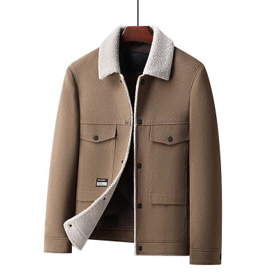 羊羔毛领鹅绒内胆双面呢羊毛茄克青年男士潮流秋冬新款羊毛厚外套