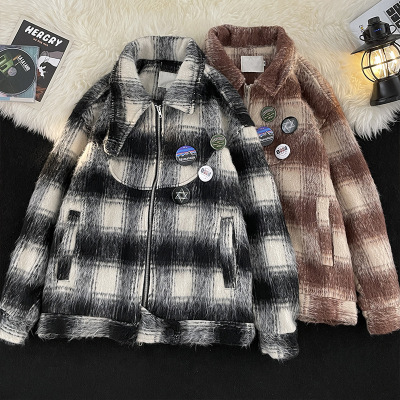 YANXU美式菱形格棉衣男潮牌ins复古情侣棒球棉服冬季加厚宽松棉袄外套