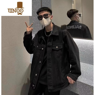 YANXU黑色牛仔外套男士2023新款潮牌潮男休闲宽松上衣服工装夹克