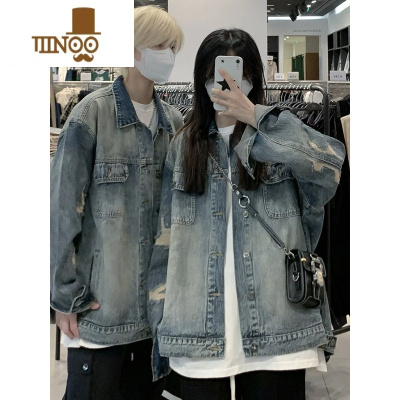 YANXUins嘻哈高街潮流做旧破洞宽松牛仔外套男 春季休闲百搭情侣装夹克