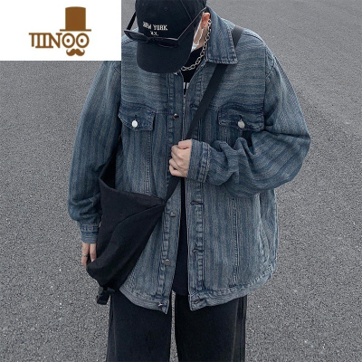 YANXU美式复古牛仔外套男秋季2023新款小众设计感高街潮牌休闲工装夹克