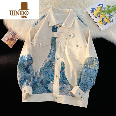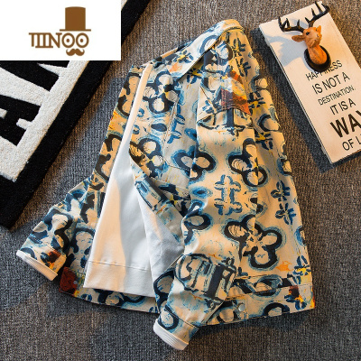 YANXUHPCP复古满印牛仔外套男感小众潮牌痞帅男士印花休闲夹克