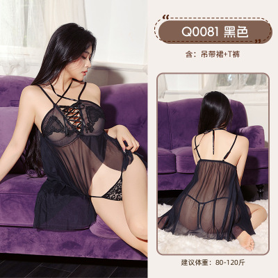 九里晴川情趣内衣蕾丝免脱透视镂空性感睡衣纯欲吊带钢托网纱睡衣
