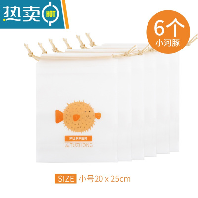 敬平玩具收纳袋抽绳束口袋子幼儿园脏衣服内衣裤行李箱旅行密封分装袋 小河豚-6个装[小号]保鲜袋