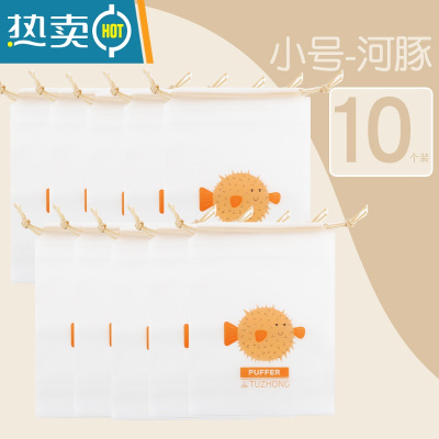 敬平玩具收纳袋抽绳束口袋子幼儿园脏衣服内衣裤行李箱旅行密封分装袋 5中号水母+5小号河豚 家庭10个装保鲜袋