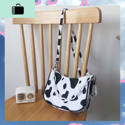 港风日系小挎包女单肩斜挎包女潮ins可爱少女学生奶牛纹小腋下包NEW LAKE 乳白色女士单肩包