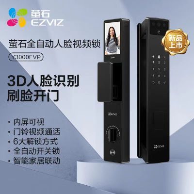 萤石Y3000FVP智能锁 曜石黑 标准锁 3D人脸识别支持指纹 内屏可视 家用全自动猫眼门铃防盗电子密码锁