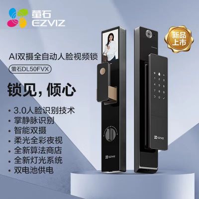 萤石DL50FVX智能锁 标准锁 全自动人脸识别视频锁支持指纹掌静脉 4英寸可视大屏 家用猫眼门铃密码锁