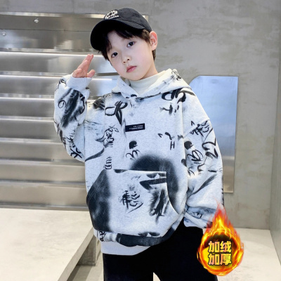 男童卫衣秋冬款新款中大童冬季潮童装加绒加厚一体绒儿童冬装