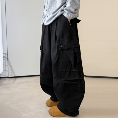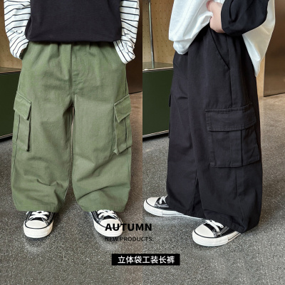 童酷男童秋款洋气纯色中小童长裤山系立体袋宽松儿童工装裤潮