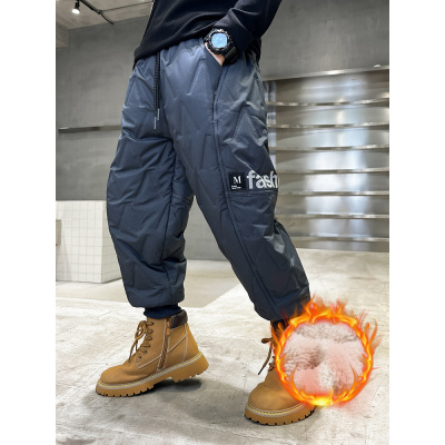 男童加绒裤子秋冬款羽绒棉棉裤新款中大儿童加厚冬季一体绒潮