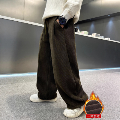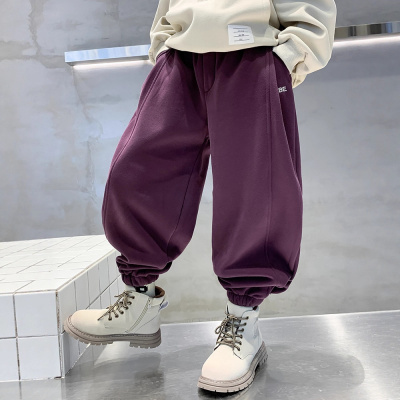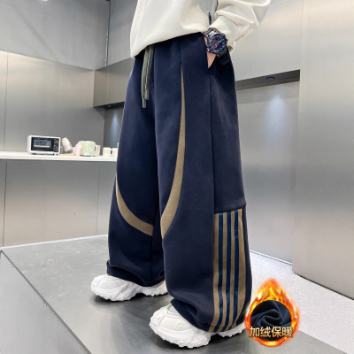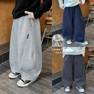 男童裤子秋冬款新款炸街加厚一体绒中大童休闲休闲运动卫裤潮