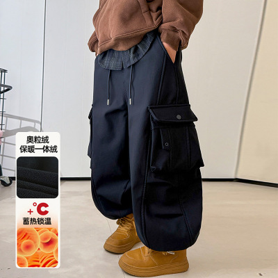 男童加绒工装裤子新款大儿童冬装长裤痞帅秋冬一体绒休闲裤潮